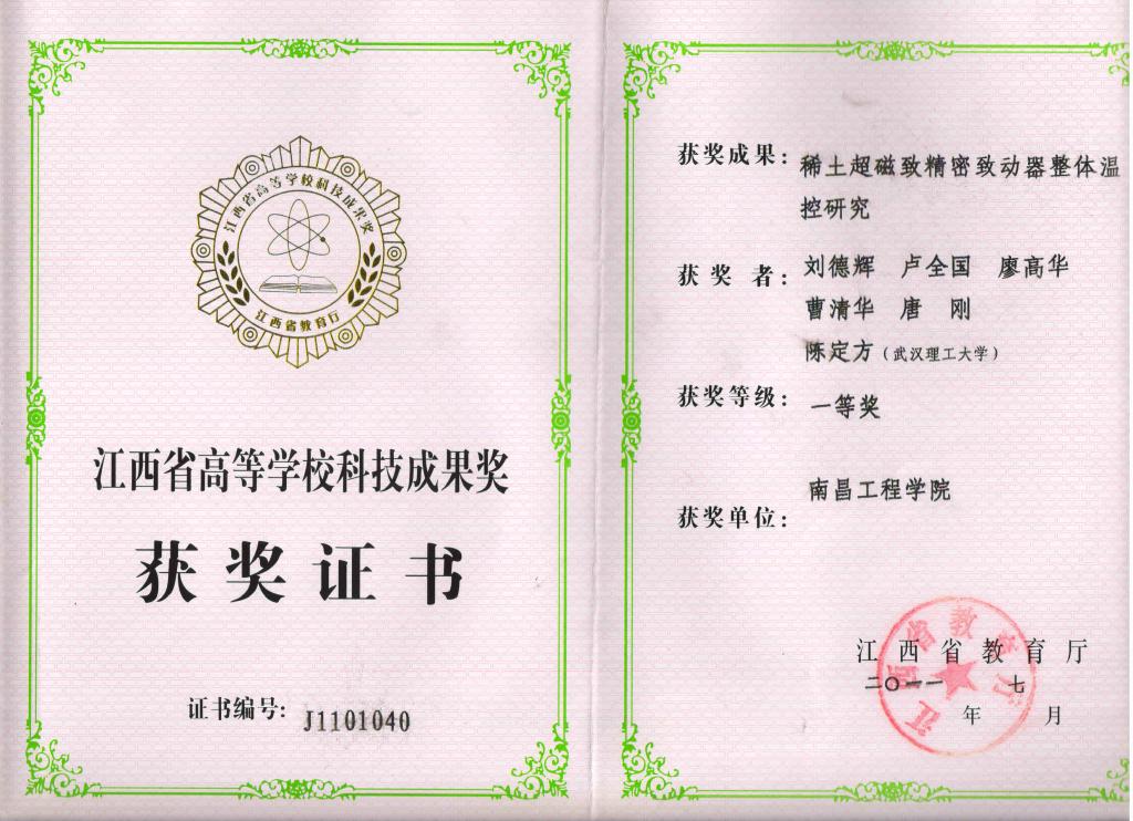 2011年省高校科技成果一等奖