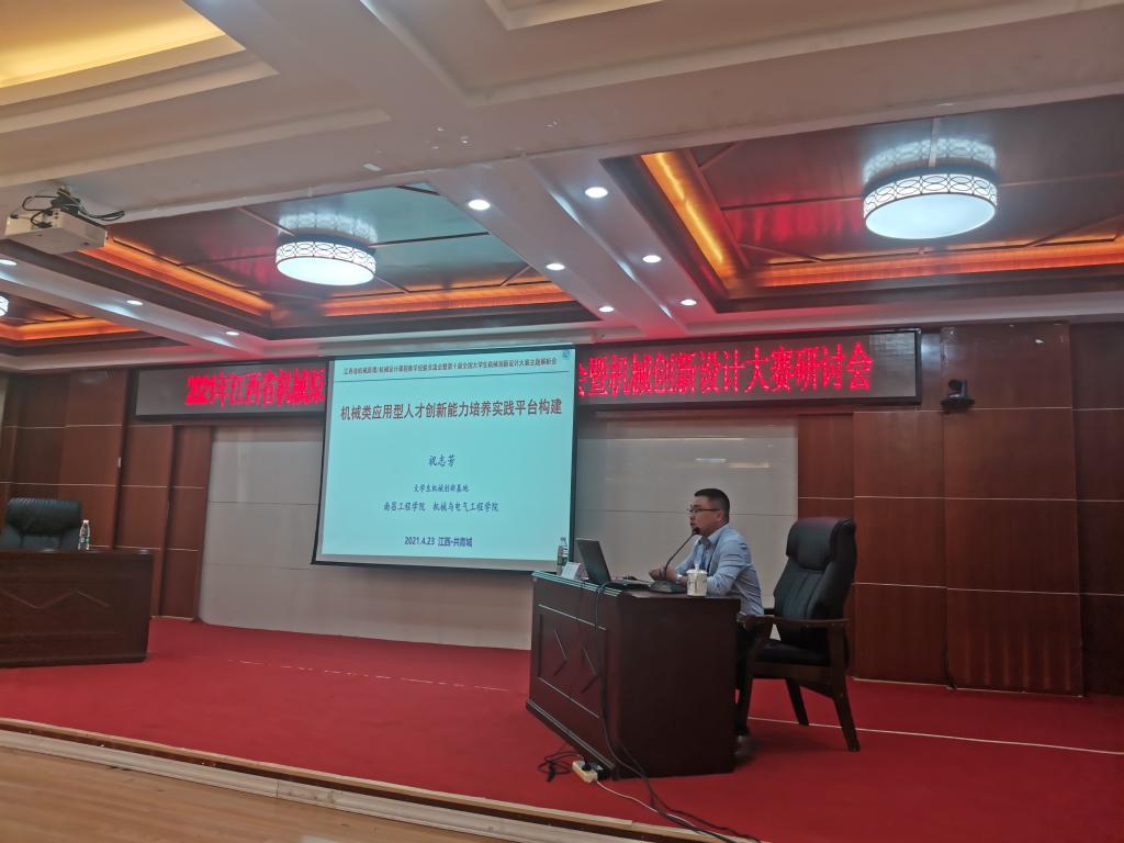 4月23-24日,2021年江西省机械原理/机械设计课程教学经验交流会暨第十届全国大学生机械创新设计大赛主题解析会在南昌大学共青学院召开。全国大学生机械创新设计大赛组委会秘书长、西安交通大学王晶教授特邀出席,来自省内39所院校的80余名专家及教师出席会议。省精密驱动与控制重点实验室专职副主任祝志芳、实验室教师朱仁淼、王欢、陶珍及李志彪参加会议,其中祝志芳应邀作了大会交流报告。会议由南昌大学共青学院教务处黄志辉主持。