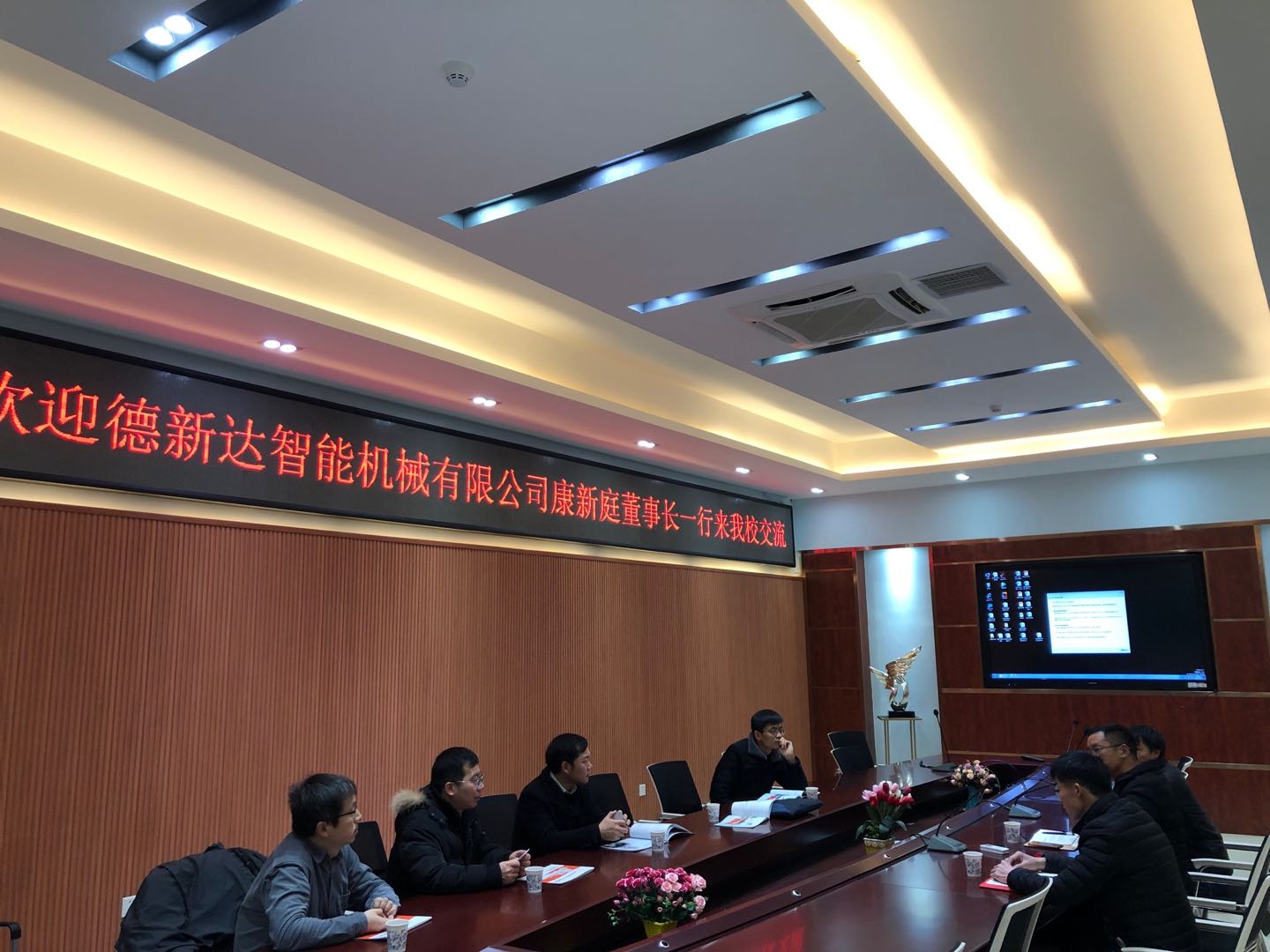 1月11日下午,我校对接科技帮扶企业寻乌德新达智能机械有限公司康新庭董事长一行来实验室进行交流。学校科研处副处长彭聪、理学院副院长王振希、实验室科研骨干朱仁淼、刘萍先和王欢等老师参加了座谈会。