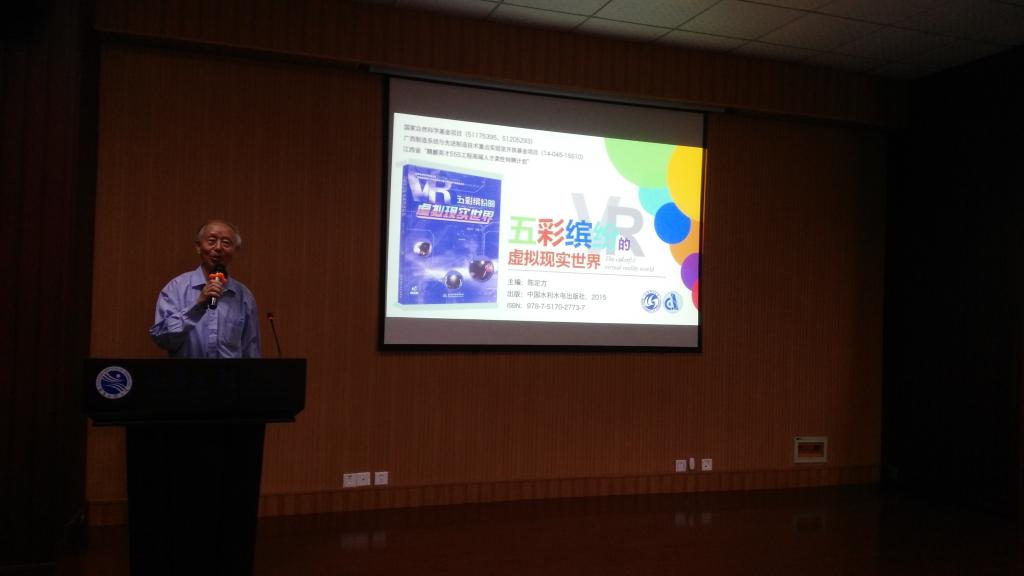 6月12日下午,武汉理工大学机械工程与计算机应用专业教授、博士生导师陈定方应江西省精密驱动与控制重点实验室邀请,来校作了题为“五彩缤纷的虚拟现实世界”的学术报告。报告会由机械与电气工程学院院长黄志开教授主持。重点实验室骨干教师及校相关专业老师和学生共计160余人到会聆听了报告。